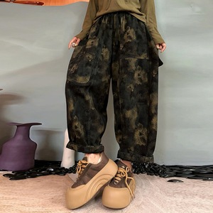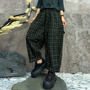 潮流格子印花老爹裤女士大码宽松遮肉显瘦牛仔垮裤九分阔腿哈伦裤
