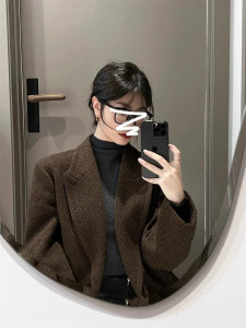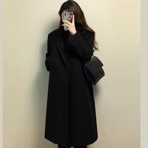 韩版西装秋冬咖色感毛呢大衣外套新款过膝加厚中长款气质呢子