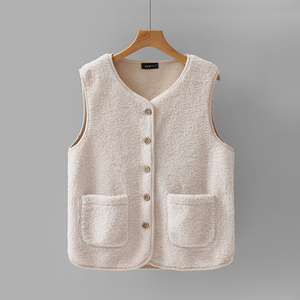 夏季季羊羔毛绒马甲女2025米白小个子宽松坎肩短款背心薄款冬外套