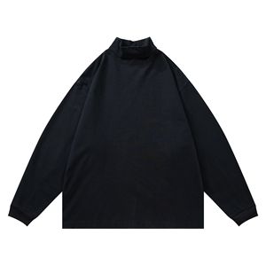 春秋300克重磅半高小领口纯色长袖T恤男女无性别纯色休闲打底衫