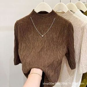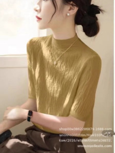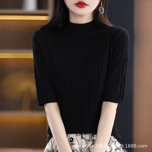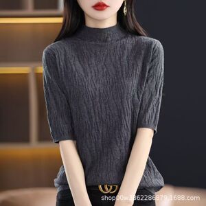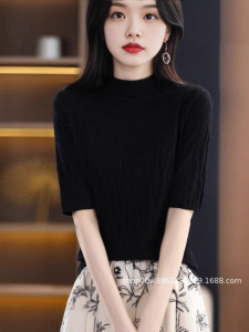 女中袖短款树坑气质士修身新款五分袖打底秋冬纹2025针织衫上衣女