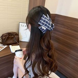 复古英伦学院风牛仔布艺纽扣铭牌抓夹蓝红格纹波点抓夹丸子鲨鱼夹