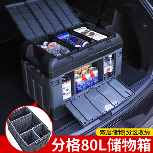 升级侧开门隔断分区车载后备箱储物箱户外露营收纳箱可折叠整理