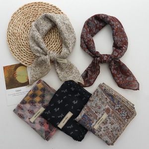 复古日系碎花百搭方巾春秋季文艺新款小领巾女薄款装饰小丝巾发带