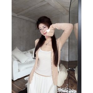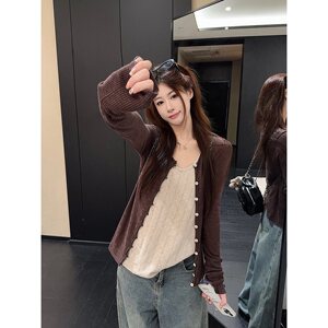 韩系纯色圆领长袖针织开衫女秋季慵懒宽松外套单排扣休闲百搭上衣