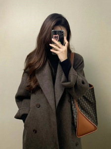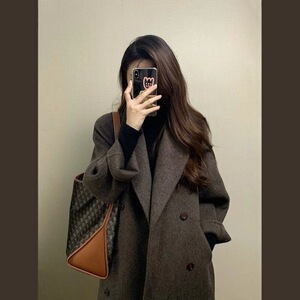 美拉德穿搭感毛呢大衣女秋冬加厚过膝中长款韩系风呢子外套