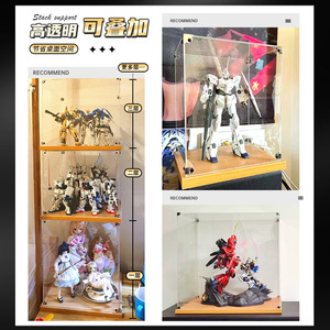 亚克力高透明手办黏土积木篮足球收纳物展示盒防尘罩模型盒木质底