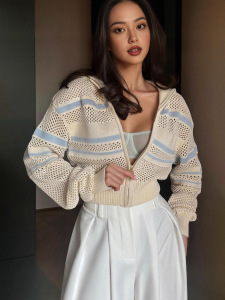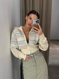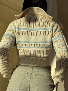夏款半高领长袖针织衫上衣休闲镂空时尚百搭防嗮外套