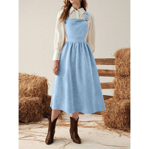 亚马逊欧美外贸跨境春秋装中长款连衣裙背带裙女学生法式度假宽松