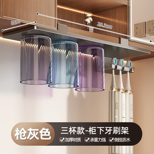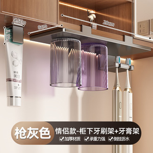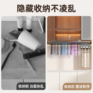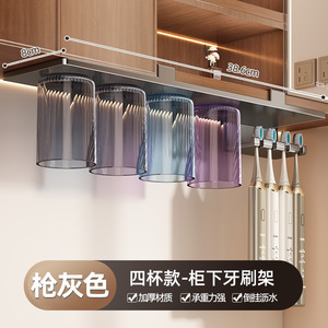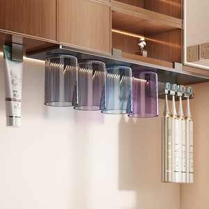 优勤镜柜下牙刷置物架免打孔壁挂卫生间磁吸漱口杯刷牙杯洗漱套装