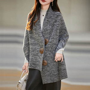 高端奢华设计感针织围巾披肩秋冬新款重磅全羊毛大扣子多功能披肩