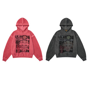 纵驰衣社美式复古高级感做旧人物图案设计中性重磅宽松连帽卫衣