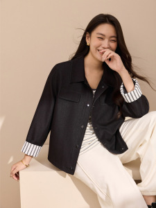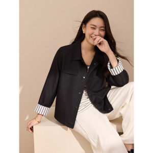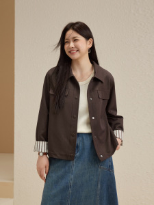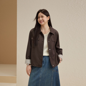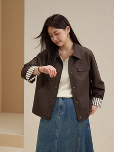 【翻领复古外套】纤莉秀大码女装潮流翻折袖口夹克衫胖mm秋装新款