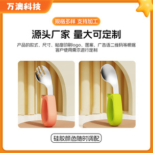 婴儿水果刮泥勺子宝宝勺不锈钢双头食品级婴童训练勺硅胶儿童餐具