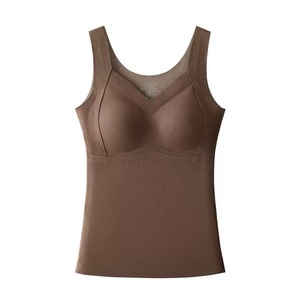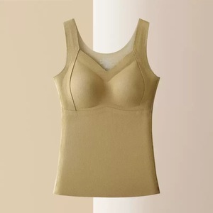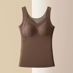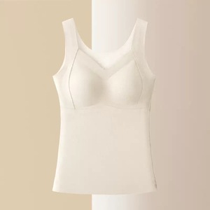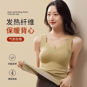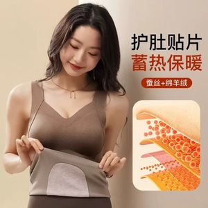 新款德绒保暖背心女带胸垫免穿文胸双层加厚保暖内衣女蚕丝贴片