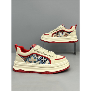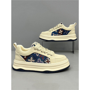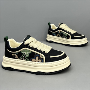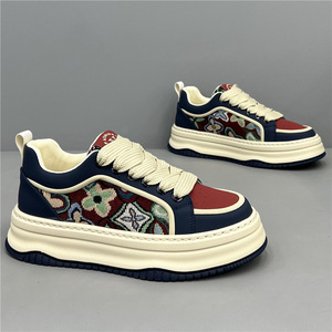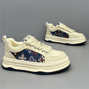 yj欧洲站时尚拼色刺绣印花休闲鞋2025秋季新款厚底潮流百搭男鞋
