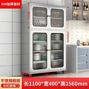 304不锈钢餐边柜厨房碗柜餐厅储物柜网门透气置物柜活动收纳柜子