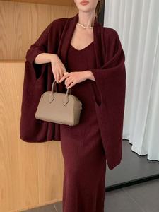 优雅老钱风毛衣披肩外套吊带连衣裙针织套装女宽松秋冬慵懒两件套