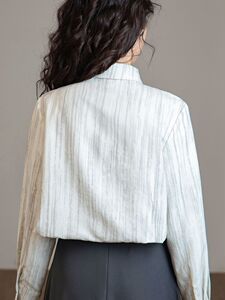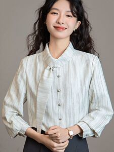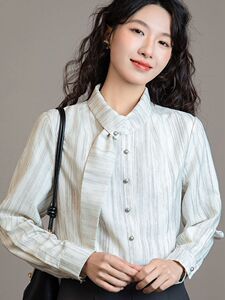 法式设计小众条纹飘带衬衫女春秋2025新款高级感休闲港风复古上衣
