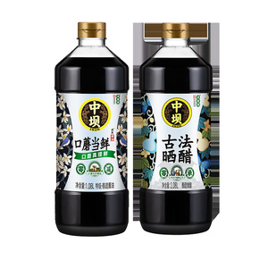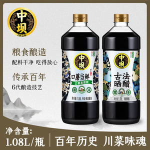 清香园中坝酱油口蘑当鲜1.08L+古法晒醋1.08L大瓶装添加酱油家用