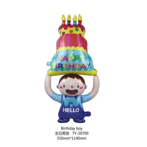 男孩举蛋糕气球