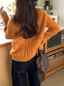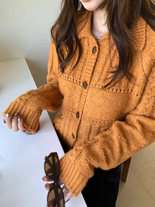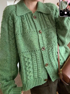 8.25晚点im向 约克郡黄昏’杂色花纱粗针小翻领爱心麻花毛衣