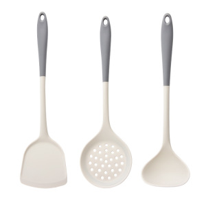 【食品级硅胶】灰白-锅铲+汤勺+漏勺(3件套)