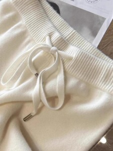 小个子白色糯米裤女秋冬显高垂感直筒长裤羊绒针织阔腿裤