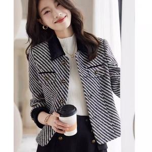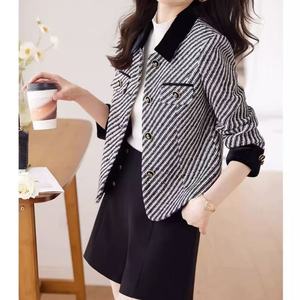感小香风外套女春秋2025新款女装小个子气质洋气韩系条纹上衣