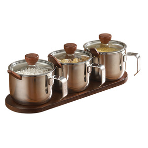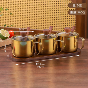 跨境304不锈钢调味罐套装厨房家用调料盒带勺子金色油盐罐调味瓶