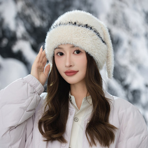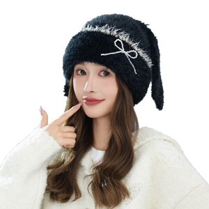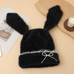 冬季帽子女款可爱兔子耳朵蝴蝶结针织帽护耳保暖毛线帽韩版包头帽