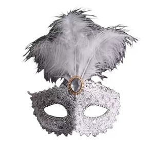 假日化妆舞会公主面具女成人派对半脸面具白色羽毛半脸眼罩道具