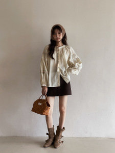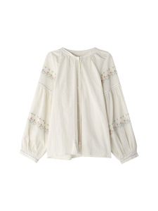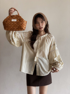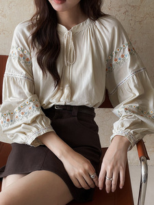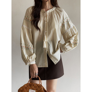 【繁花映袖】歌铭复古流苏系带衬衫女秋季新款刺绣长袖上衣T1968F