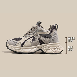 【内增高8厘米】秋冬加绒真皮女小个子时尚舒适运动老爹鞋010420
