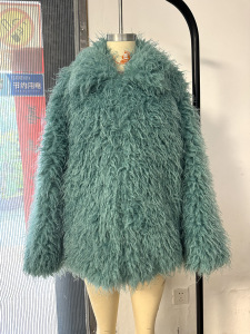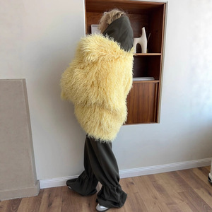 跨境黄色毛绒外套欧美风仿皮草环保皮草外套女oversise穿搭上衣