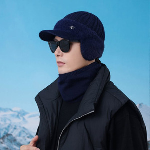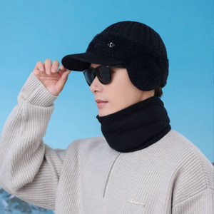 秋冬季男女毛线帽套头帽加绒冬天户外休闲保暖围脖护耳骑车针织帽