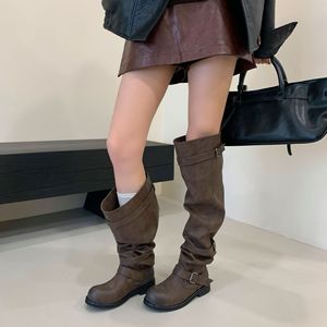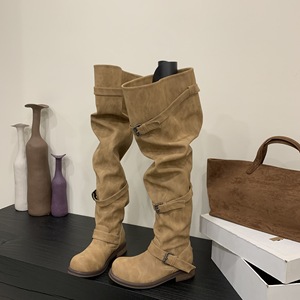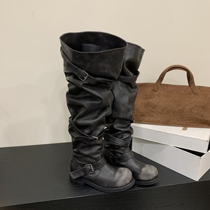 555-2~粗跟法式过膝长靴女靴子2025年秋冬季新款高筒堆堆靴