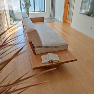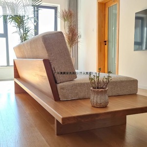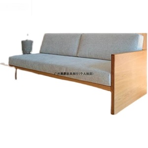 民宿实木布艺沙发客厅小户型侘寂风现代简约可拆洗双三人原木沙发