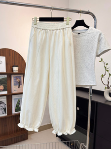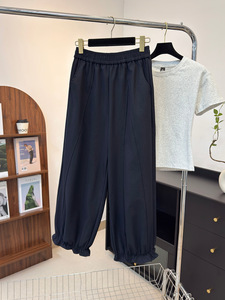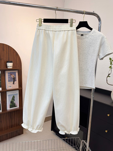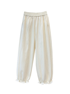 纯色钛金棉甜椒裤休闲女装松紧腰宽松百搭减龄木耳边花苞裤子9675