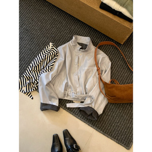 MZI STUDIO-领袖口撞色系带皮衣复古百搭气质皮衣(配腰带)12696B