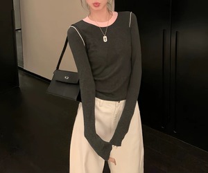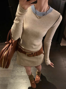 欧阳家 撞色针织衫女冬季新款圆领内搭打底衫修身显瘦长袖上衣