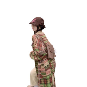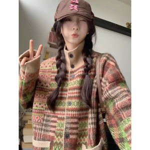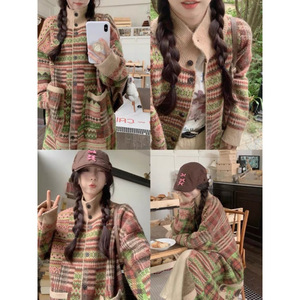 长款毛衣风外套女冬季复古外穿洋气宽松针织立领长袖开衫