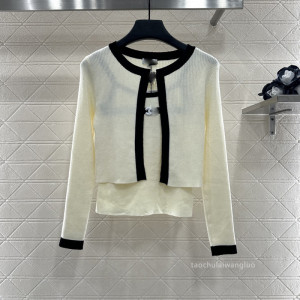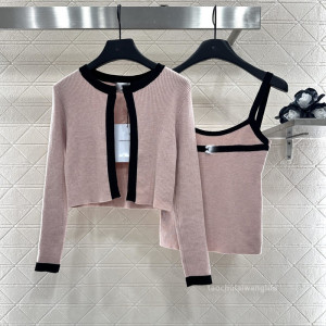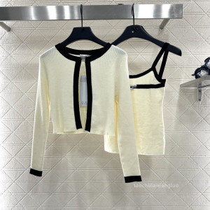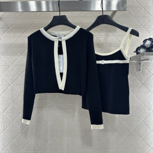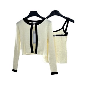 韩系少女风百搭圆领撞色针织长袖开衫+吊带上衣两件套早秋CT81660
