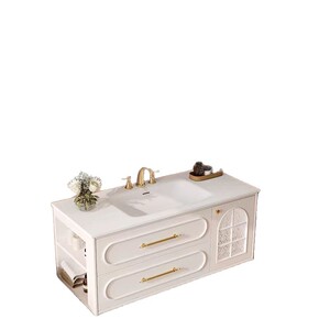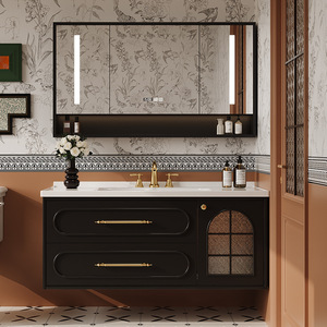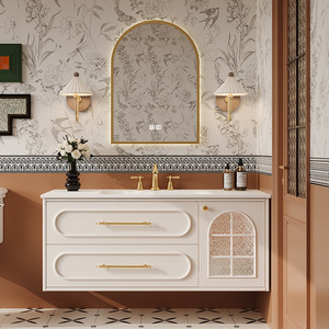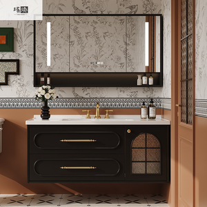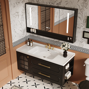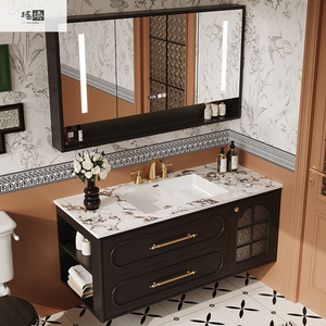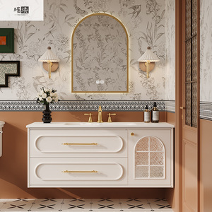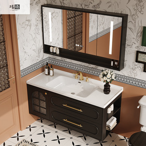 法式复古浴室柜组合卫生间橡木洗脸池洗手盆陶瓷一体盆轻奢洗漱台