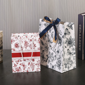 复古繁花覆膜白卡纸手提袋节日送礼礼物袋女装衣服礼品袋子霸王茶