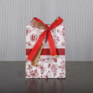 竖款红繁花(无字)双色丝带;白卡纸;中号高26*长21*宽11
