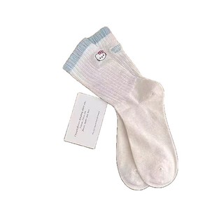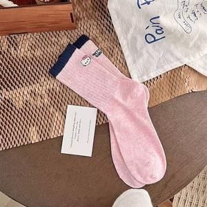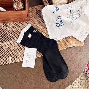 袜子女早秋AB款罗口撞色中筒韩版ins多巴胺个性后跟字母卡通kt猫