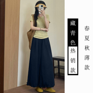 韩系木耳花边拼接阔腿裤女胖妹妹大码夏季薄款高腰百搭直筒休闲裤