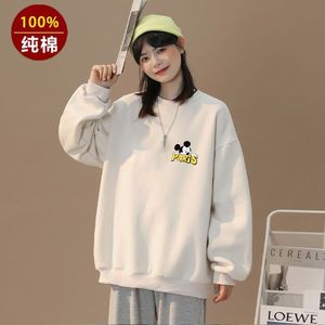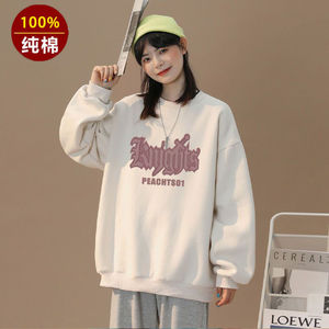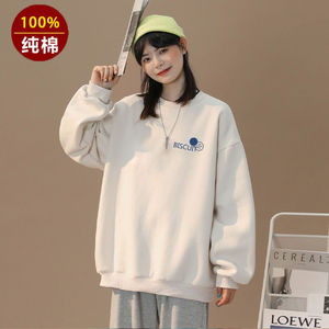 100重磅纯棉圆领长袖卫衣女秋冬新款慵懒风时尚学生T恤上衣外套
