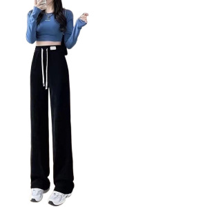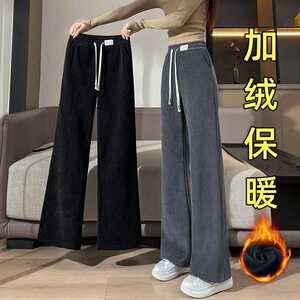 欧棉绒阔腿裤女加绒裤子冬季2025新款秋冬小个子加厚窄版直筒女裤